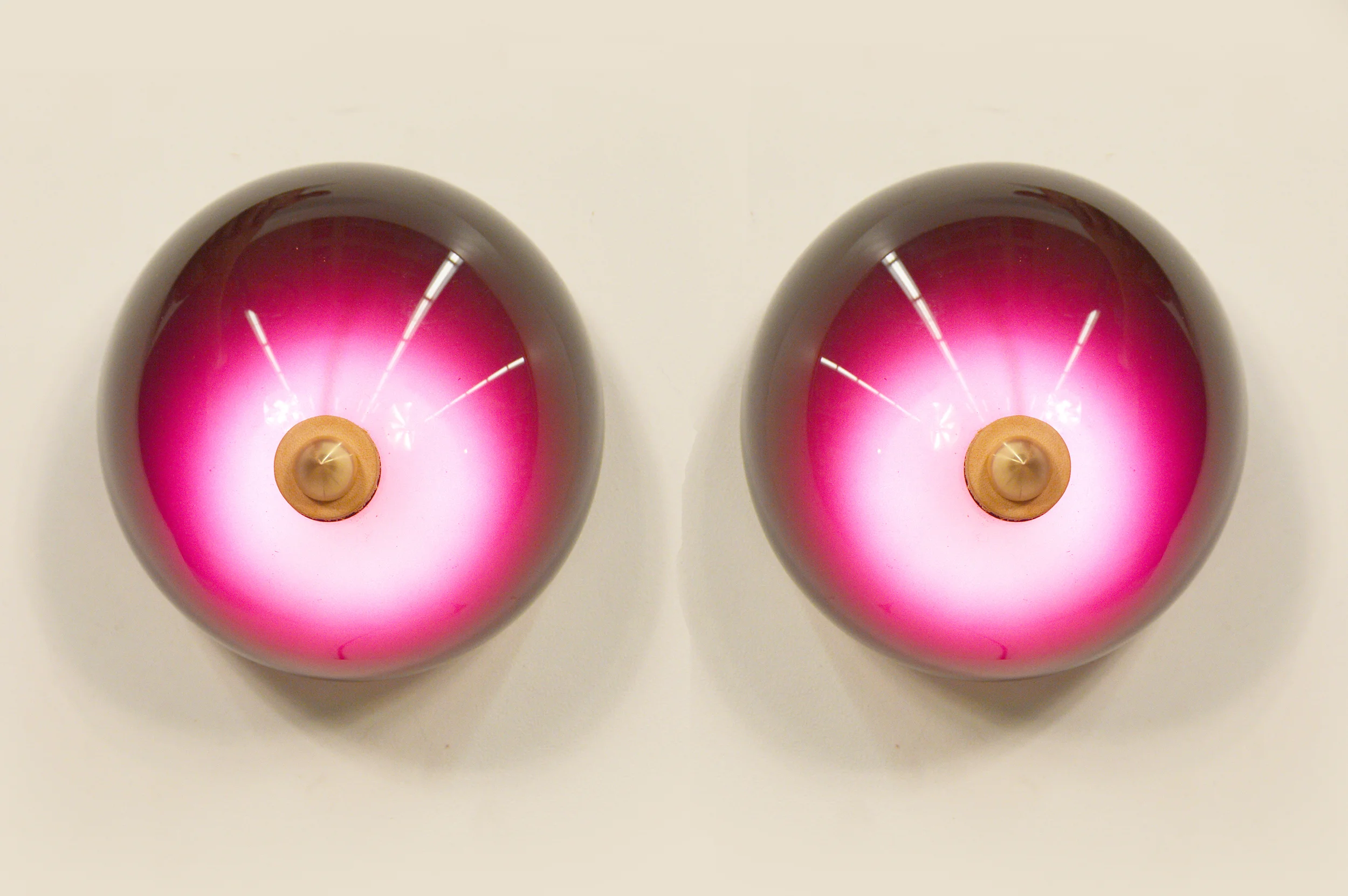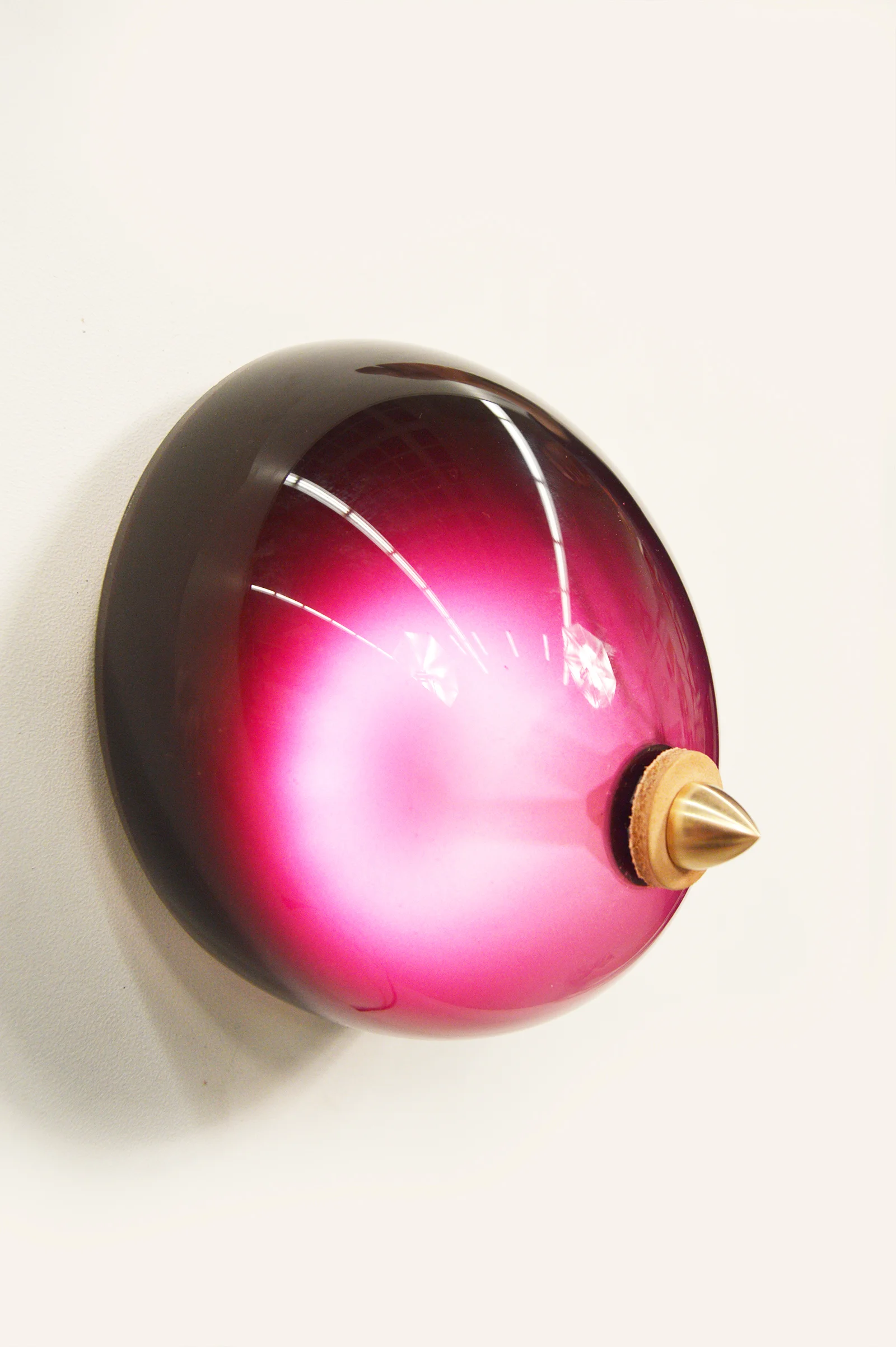 A hand-blown glass wall sconce, activated by touch sensor which is wired to the brass nipple.
