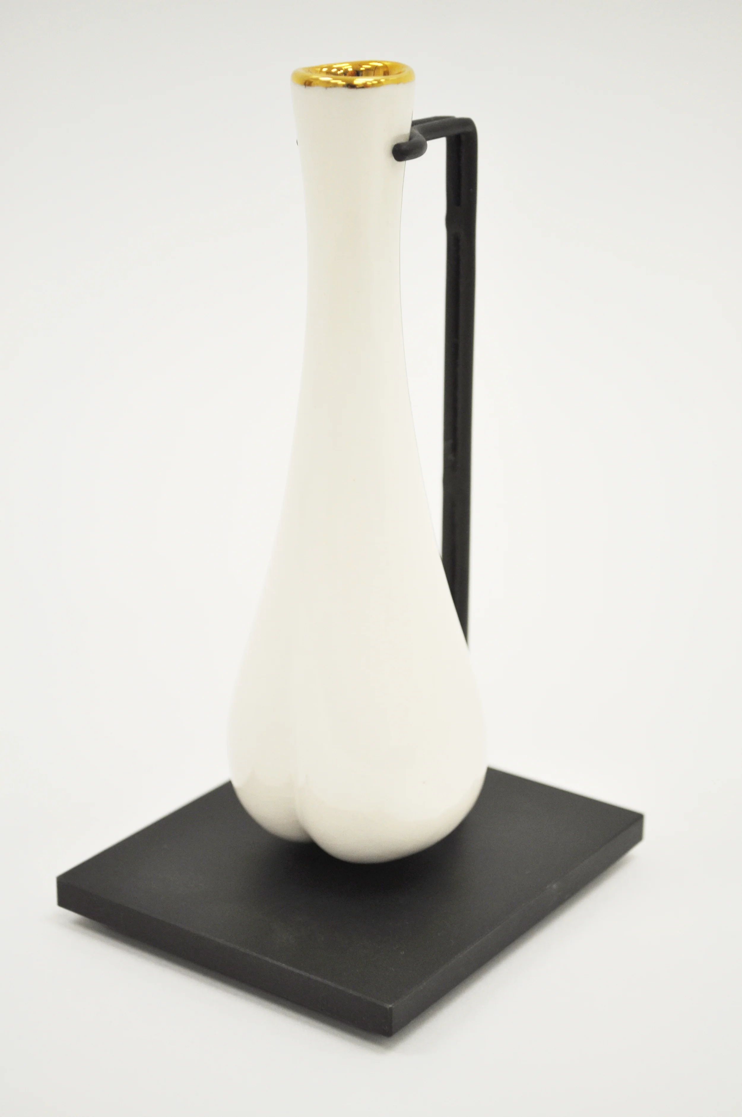 Slip cast porcelain single bud vase, inspired by Ancient Egyptian fertility planters that commonly depicted male genitalia.